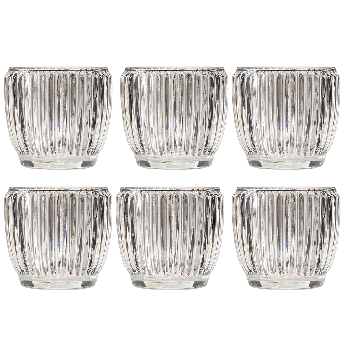Photophore en verre lanterne avec rainures transparent Ø7cm 6 pcs