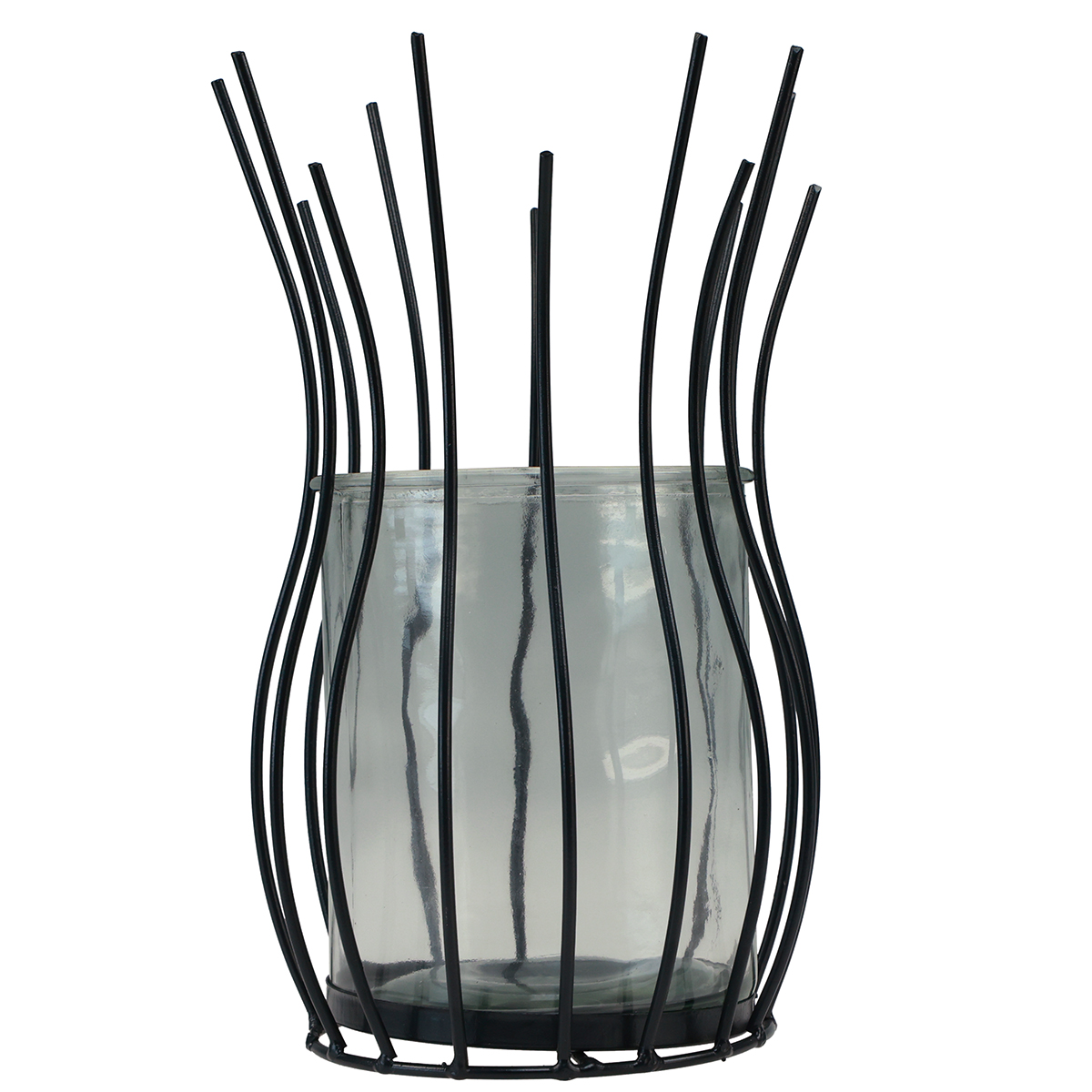 Calice decorativo nero lanterna in vetro metallo Ø17cm H27cm
