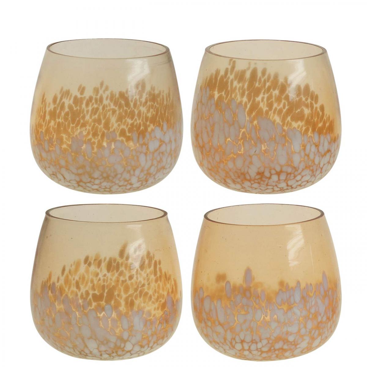Lanterne verre photophore verre décoration marron blanc Ø8cm 4pcs