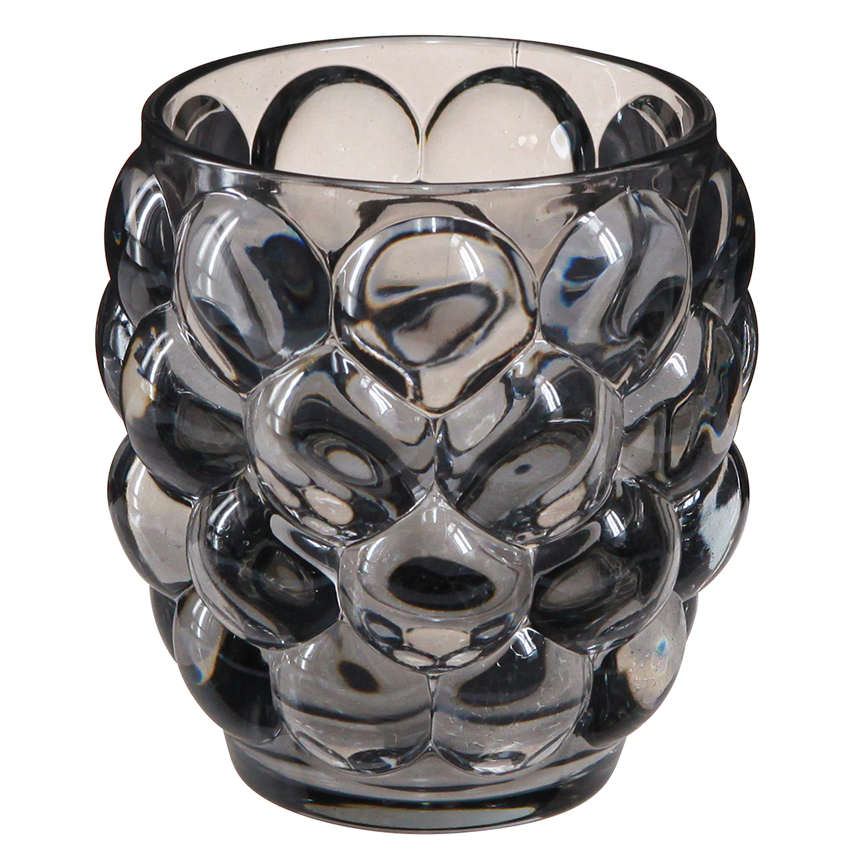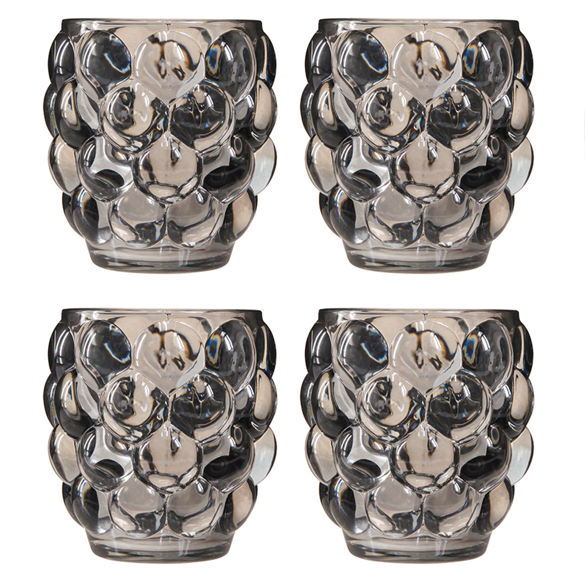 Photophore lanterne en verre teinté gris Ø9cm H9,5cm 4pcs