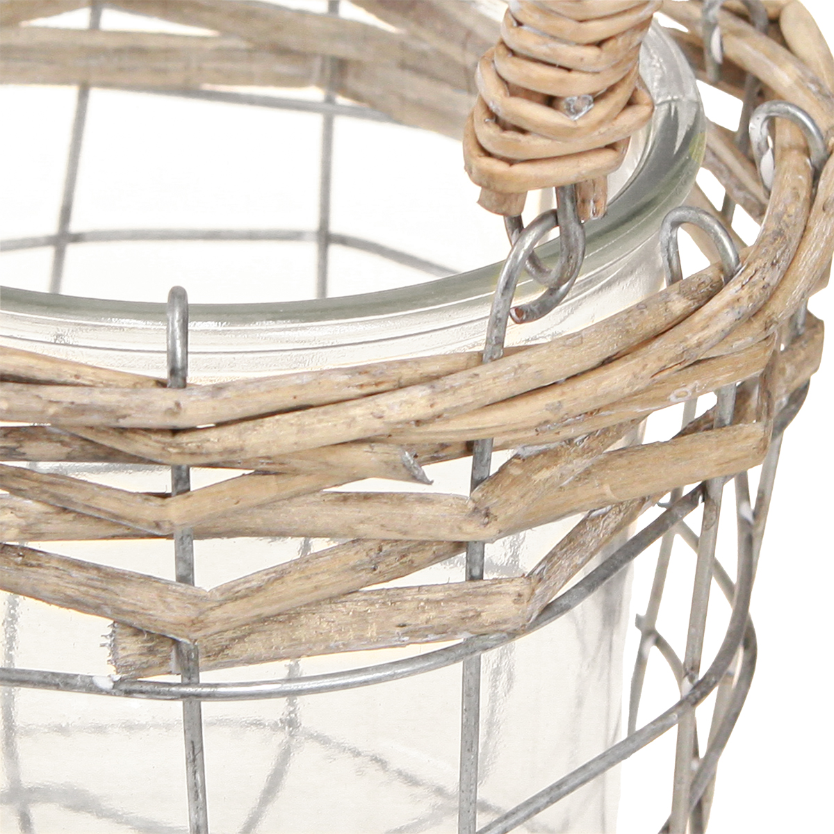 Windlicht zum Hängen aus Glas, Metall und Weide – rustikale Eleganz für Ihren Garten