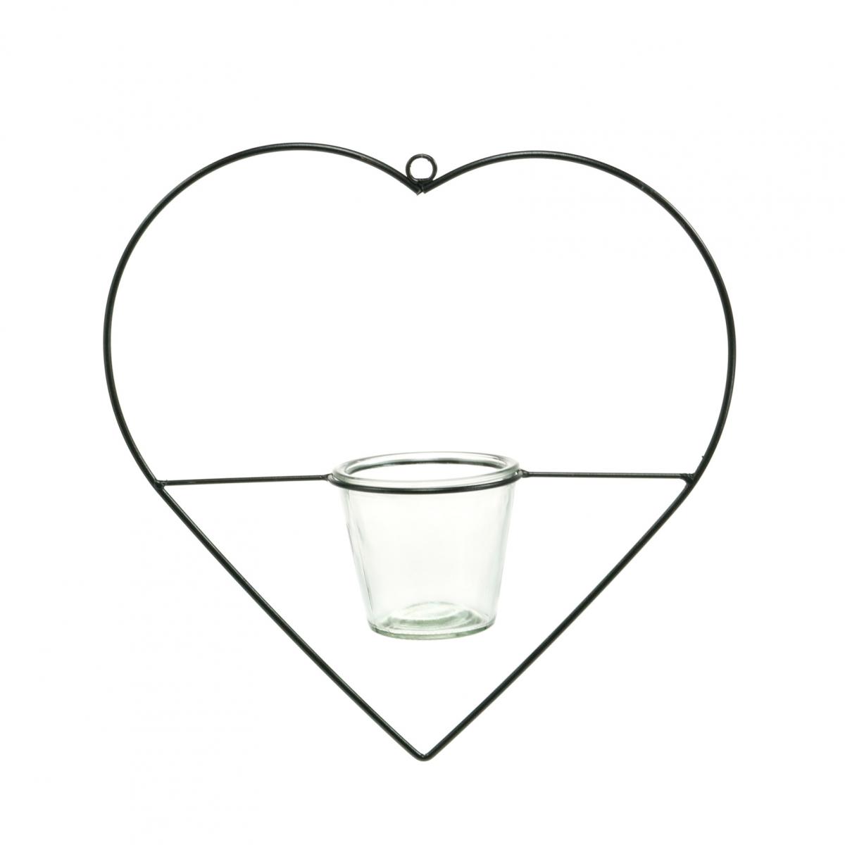 Lanterne coeur métal 28cm photophore pour verre suspendu 9cm