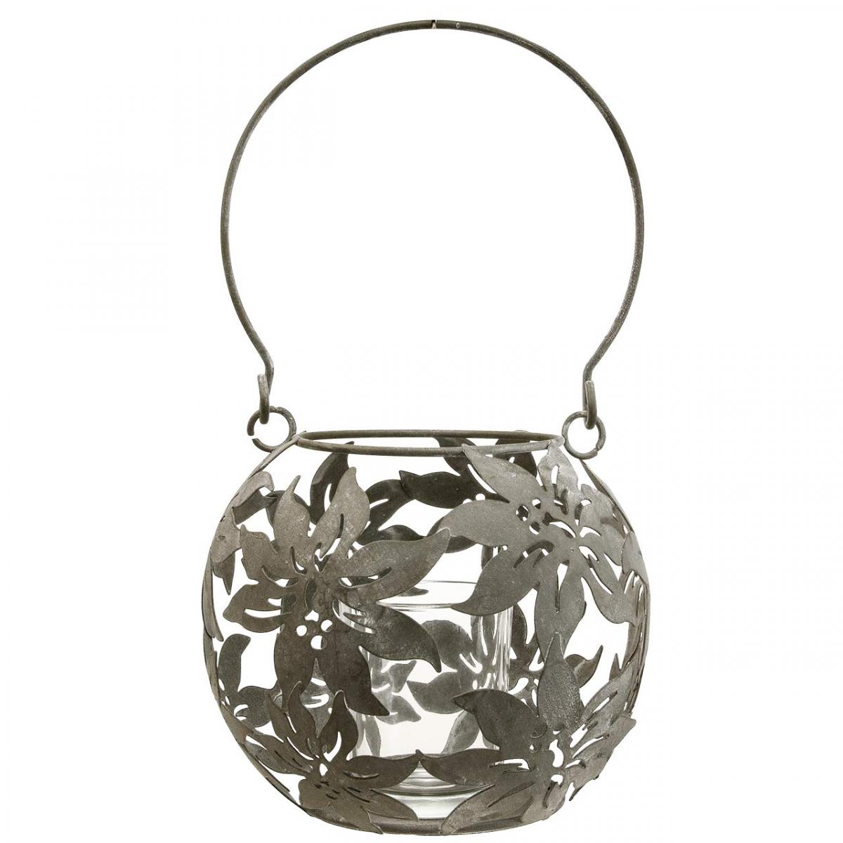 Wind light métal décoration à suspendre lanterne décorative grise Ø14cm H13cm