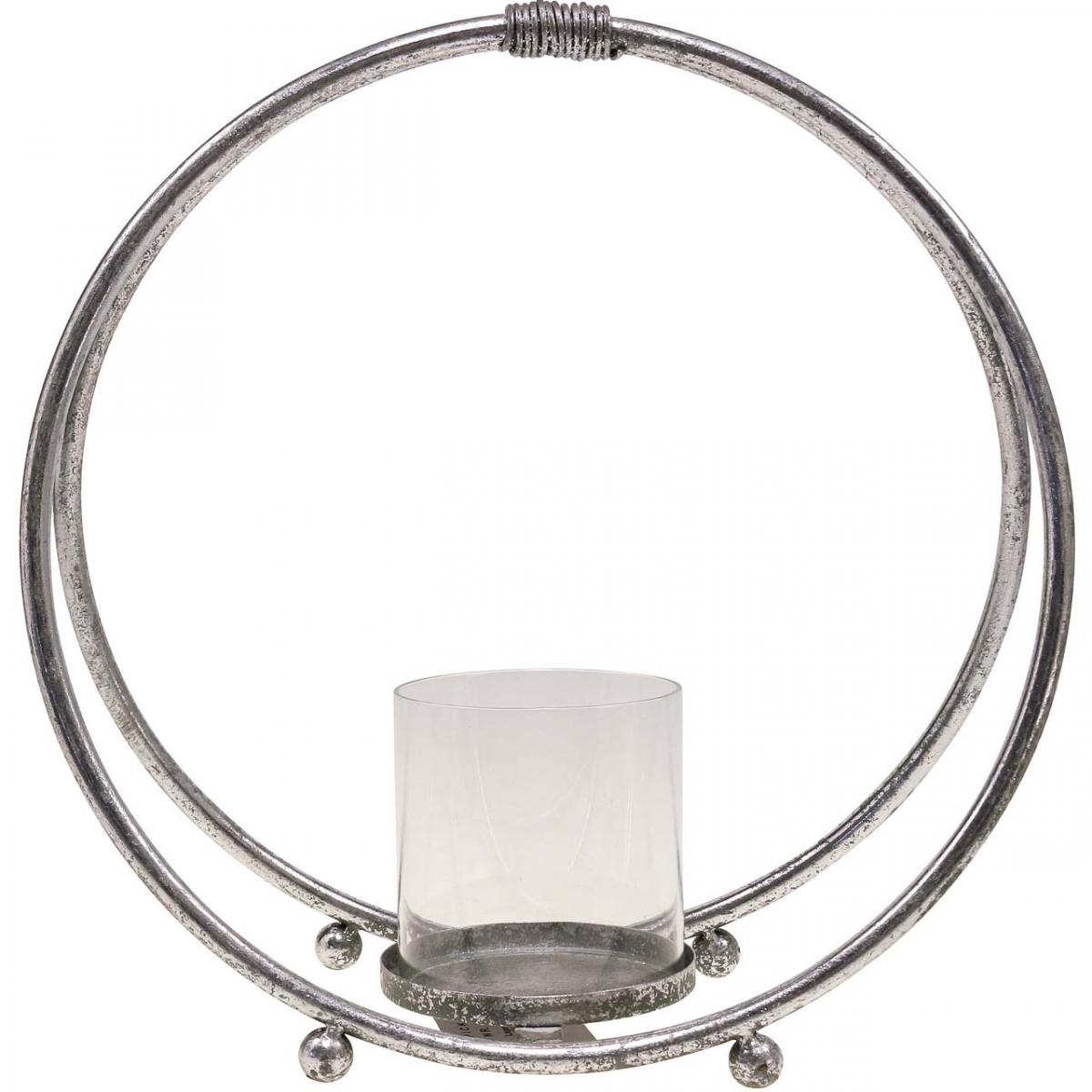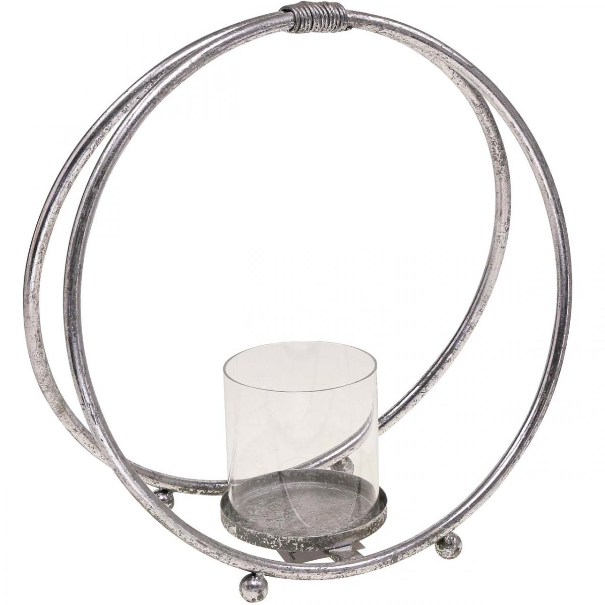 Produktname: Windlicht Metall Kerzenhalter Silbern Glas Ø33cm