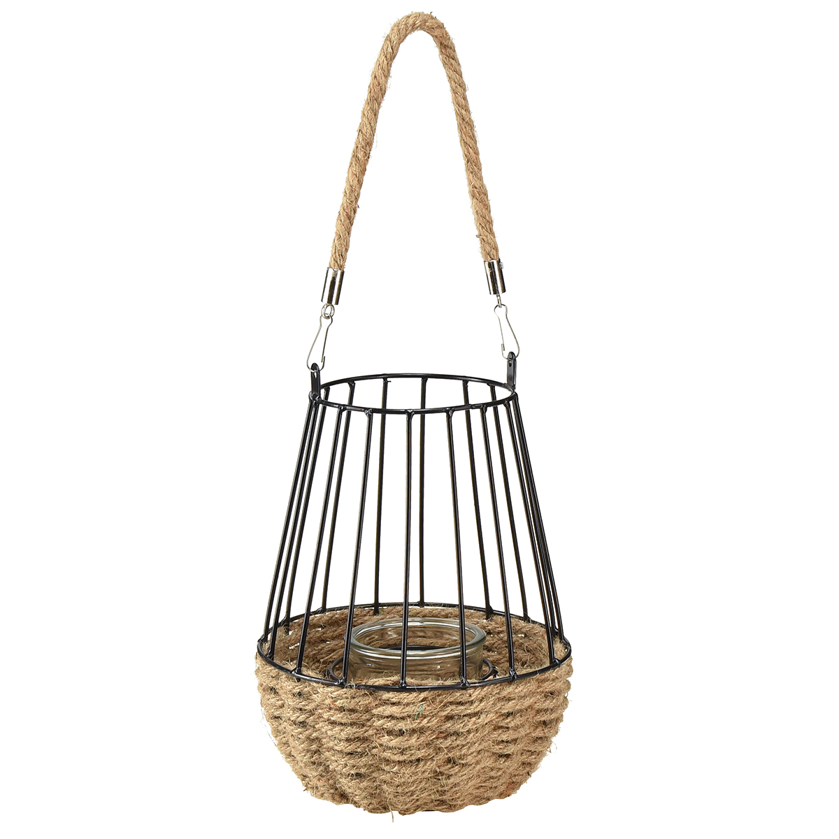 Ideal für Dekorateure, DIY-Enthusiasten und alle, die gerne ihr Zuhause liebevoll und individuell gestalten. Sichern Sie sich jetzt Ihr Windlicht in Schwarz mit Henkel aus Hanf und einem Kerzenglas und tauchen Sie Ihre Umgebung in ein warmes, einladendes Licht.