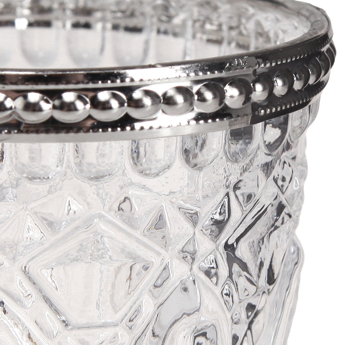 - Retro-Windlicht aus klarem Glas mit silbernem Metallrand