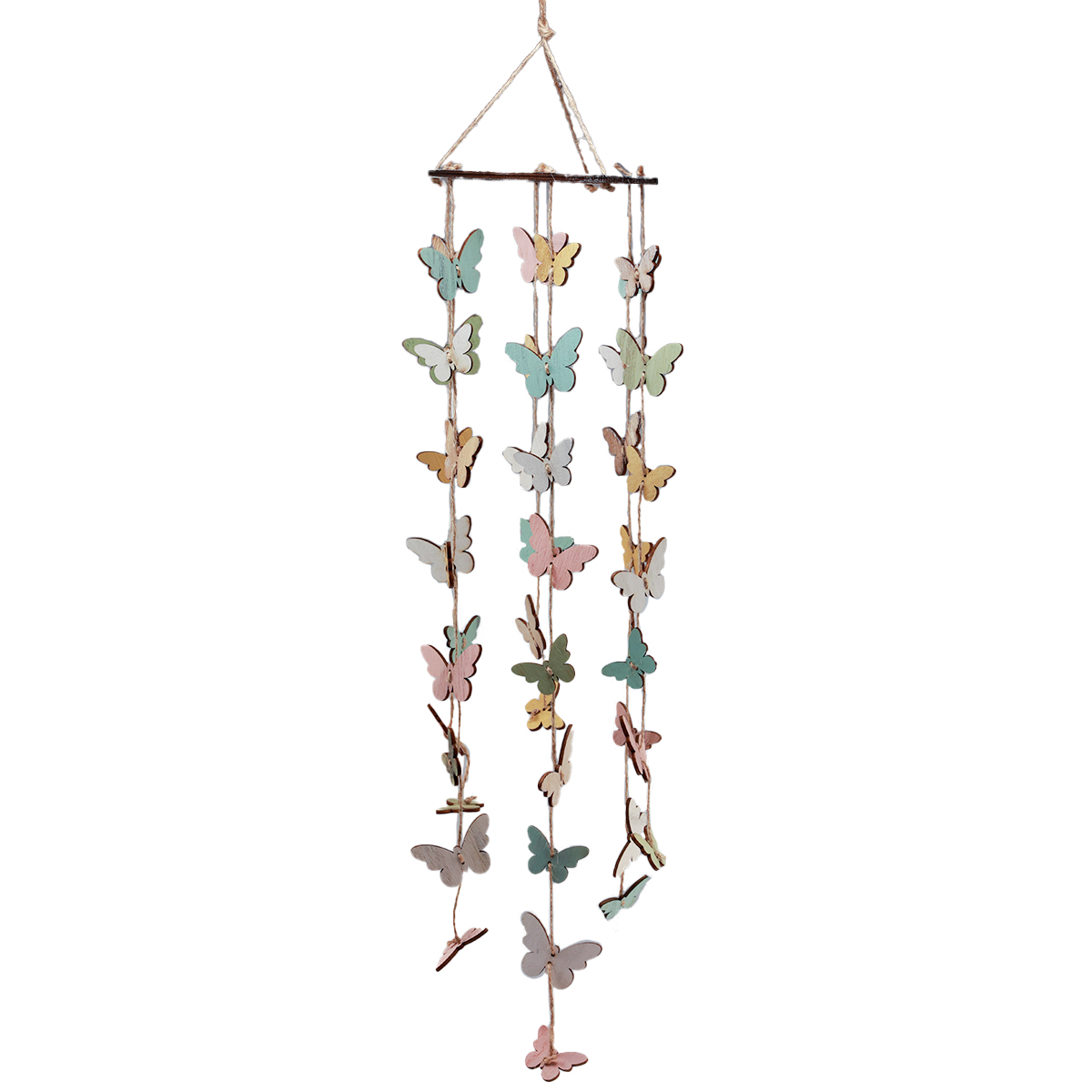 Carillon éolien décoration papillons décoration de fenêtre bois Ø15cm 55cm
