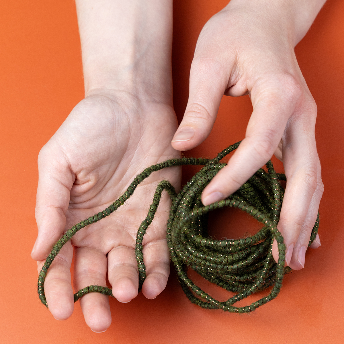 Cordon en laine verte avec fil doré, 5 m x 5 mm avec fil métallique – le cordon décoratif idéal pour les loisirs créatifs.