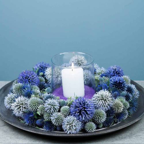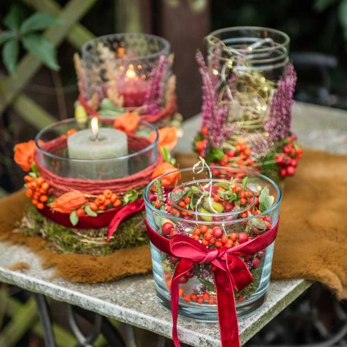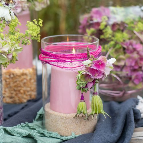 Das Windlicht und den Ring aus Steckschaum für eure Sommerdeko findet ihr in unserem Onlineshop.