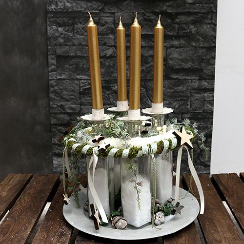 CHF 13,20 * CHF 3,30 pro StückGerade in einem Weihnachts- oder Adventskranz darf ein Kerzenhalter zum Stecken für Stumpenkerzen selbstverständlich nicht fehlen! Dieser Lichthalter in Creme sieht in seiner Form aus wie ein schöner Blütenkranz, der sich leicht nach oben wölbt. Das Schöne daran ist, dass sich durch dieses clevere Design auch ein praktischer Tropfschutz ergibt, der Ihren Kranz vor heruntertopfendem Wachs schützt. Mit dem...
