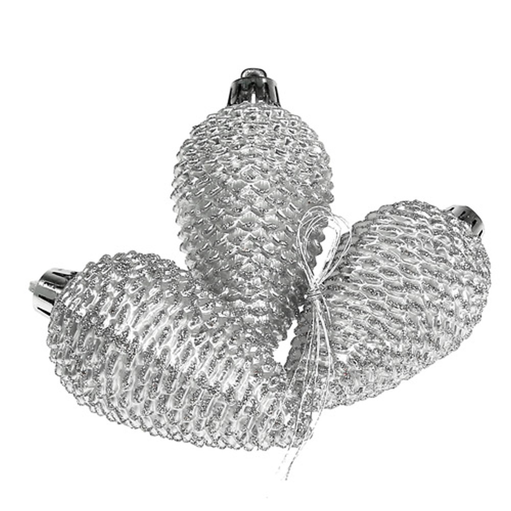 Pigne da appendere Addobbi in plastica Argento 8cm 6pz