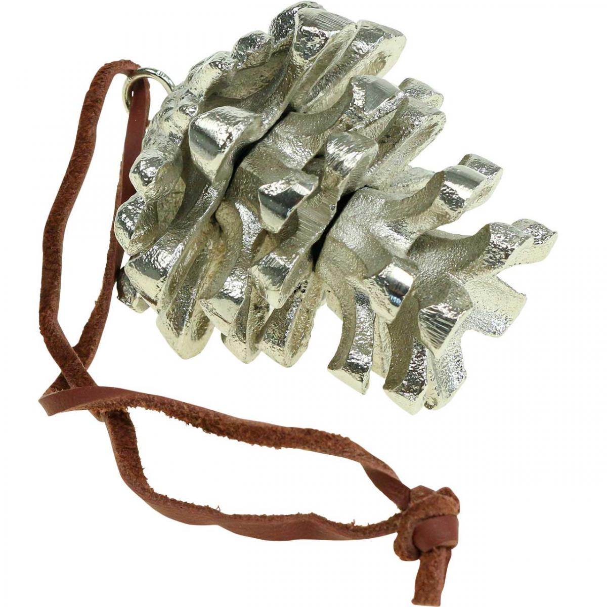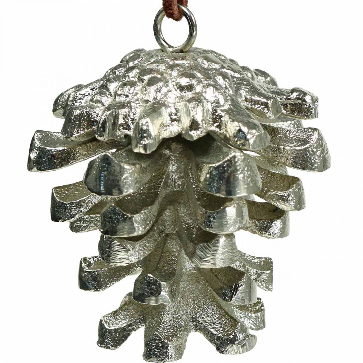 Produktname: Tannenzapfen Deko Zapfen zum Aufhängen Silber H6cm