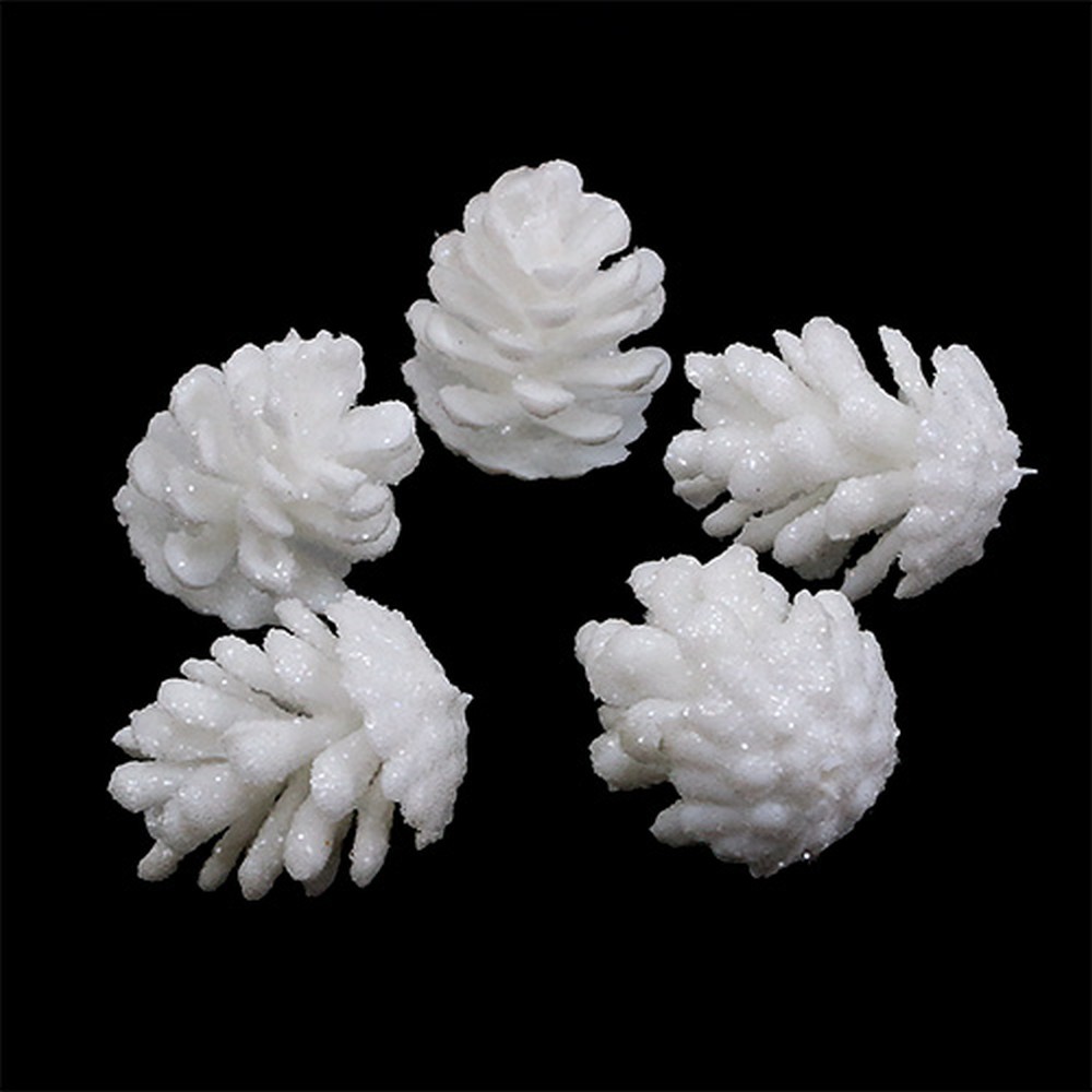 I coni decorativi in bianco con mica vengono consegnati in un totale di 45 pezzi. Ciascuno dei piccoli coni è largo circa 3-3,5 centimetri.