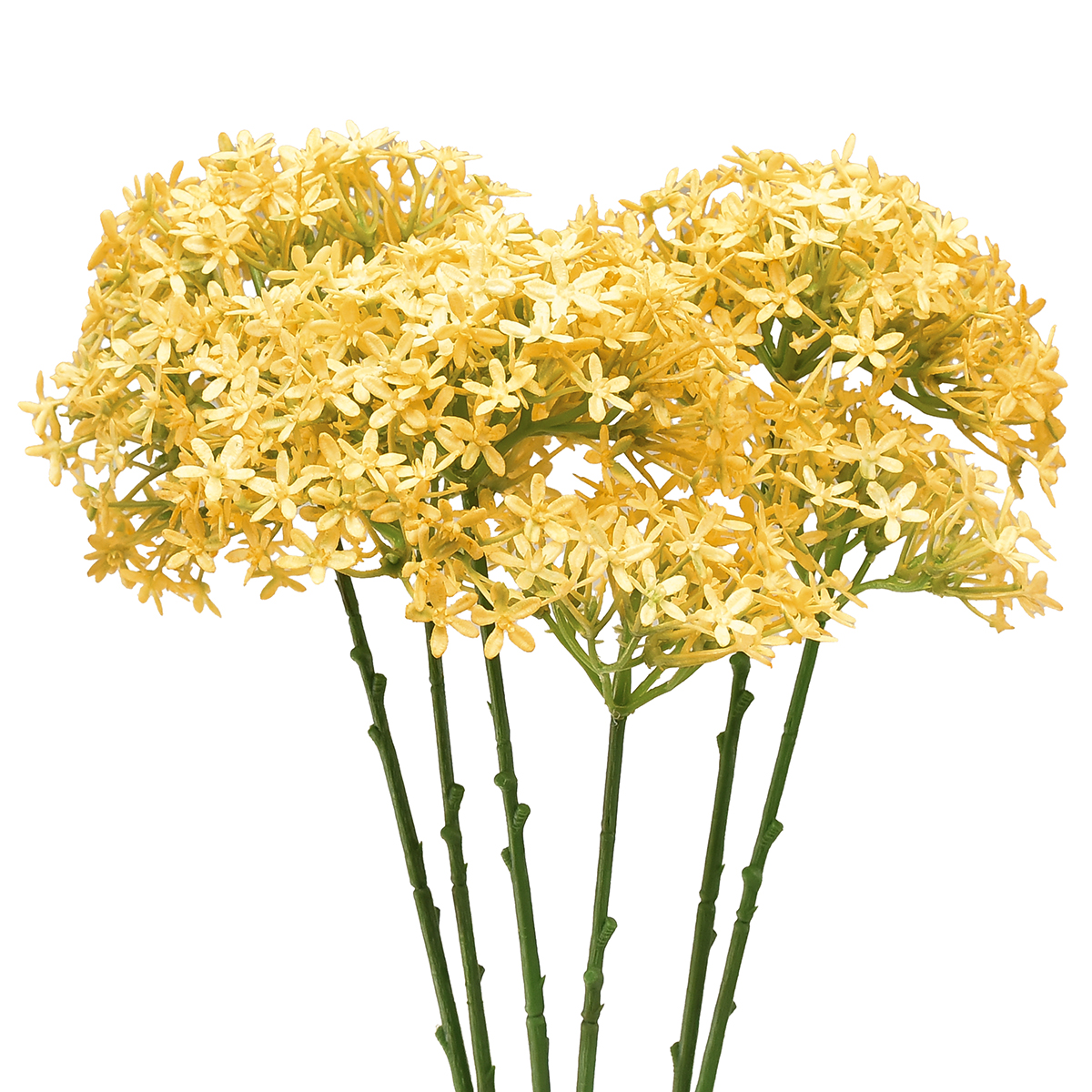 Die großartigen Wiesenblumen in Gelb bekommen Sie zu drei Stück, so dass Sie insgesamt sechs unterschiedlich große Blütenstände für Ihre Kränze, Sträuße und Gestecke erhalten. Darüber hinaus finden Sie in unserem Shop künstliches Allium als Kugelblüte in Rosa, in Weiß und in vielen Pink- und Lila-Tönen – und außerdem ein riesiges Sortiment an weiteren Kunstblumen!