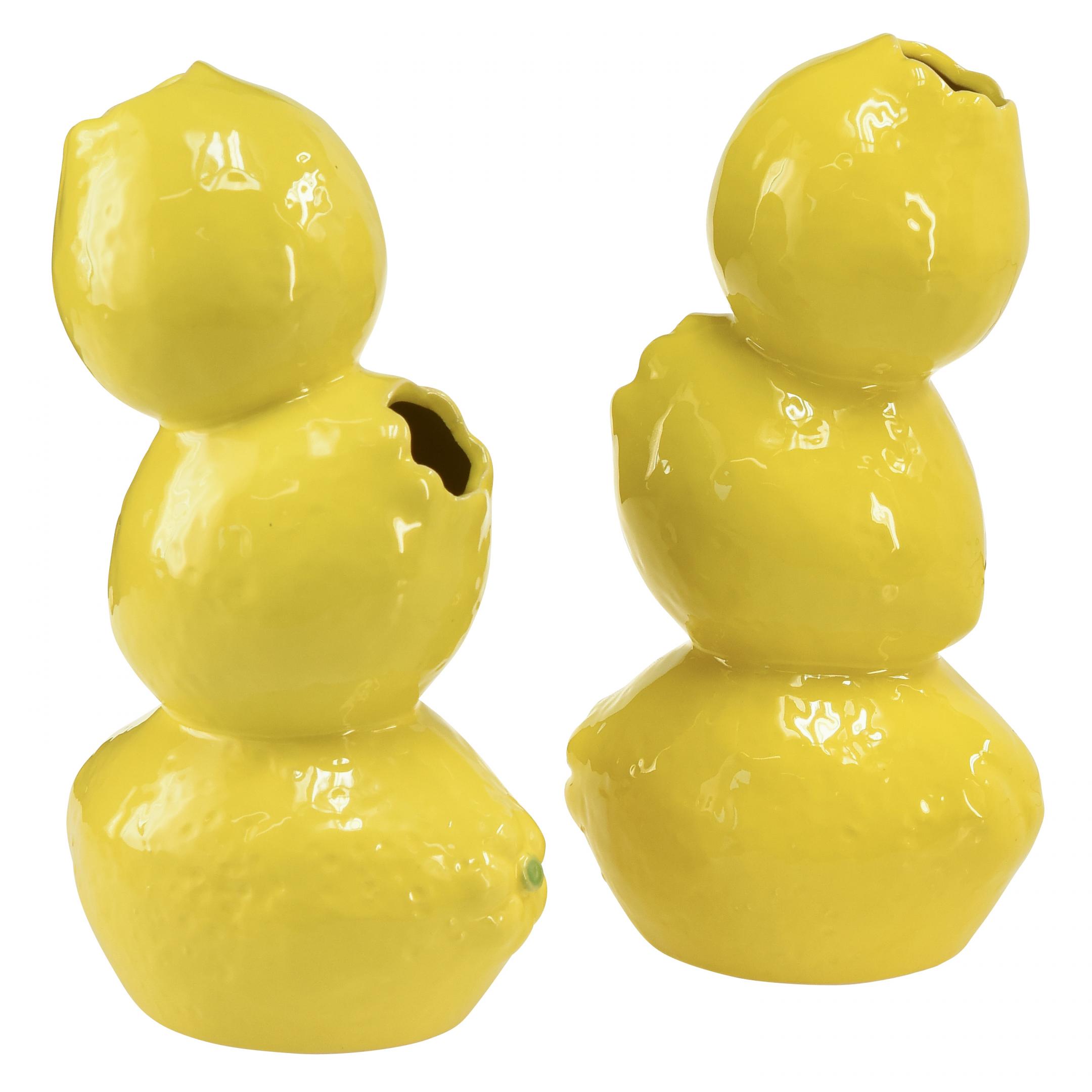 Vaso limone vaso porta fiori giallo decoro estivo in ceramica H20cm